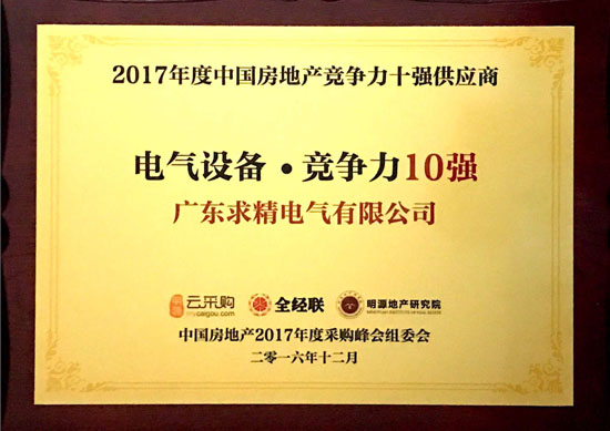 万象城体育官网awc8电气荣获2017年度中国房地产竞争力十强供应商
